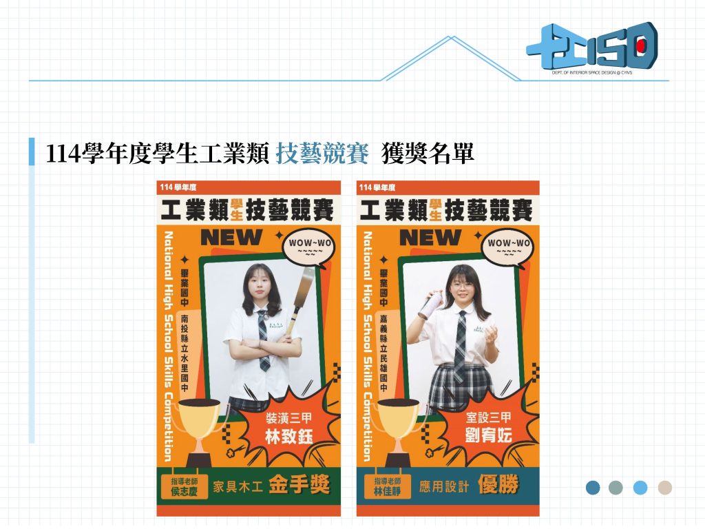 狂賀114學年度學生工業類 技藝競賽 獲獎名單Post author:室設科Post published:2025-12-12Post category:室設科公告 / 室設科競賽榮譽榜 Post Views: 26Tags: 得獎