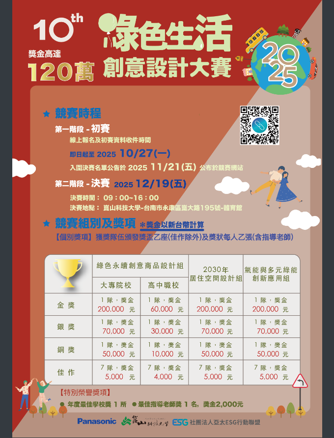 崑山科技大學辦理『第十屆2025綠色生活創意設計大賽』歡迎踴躍參賽。
