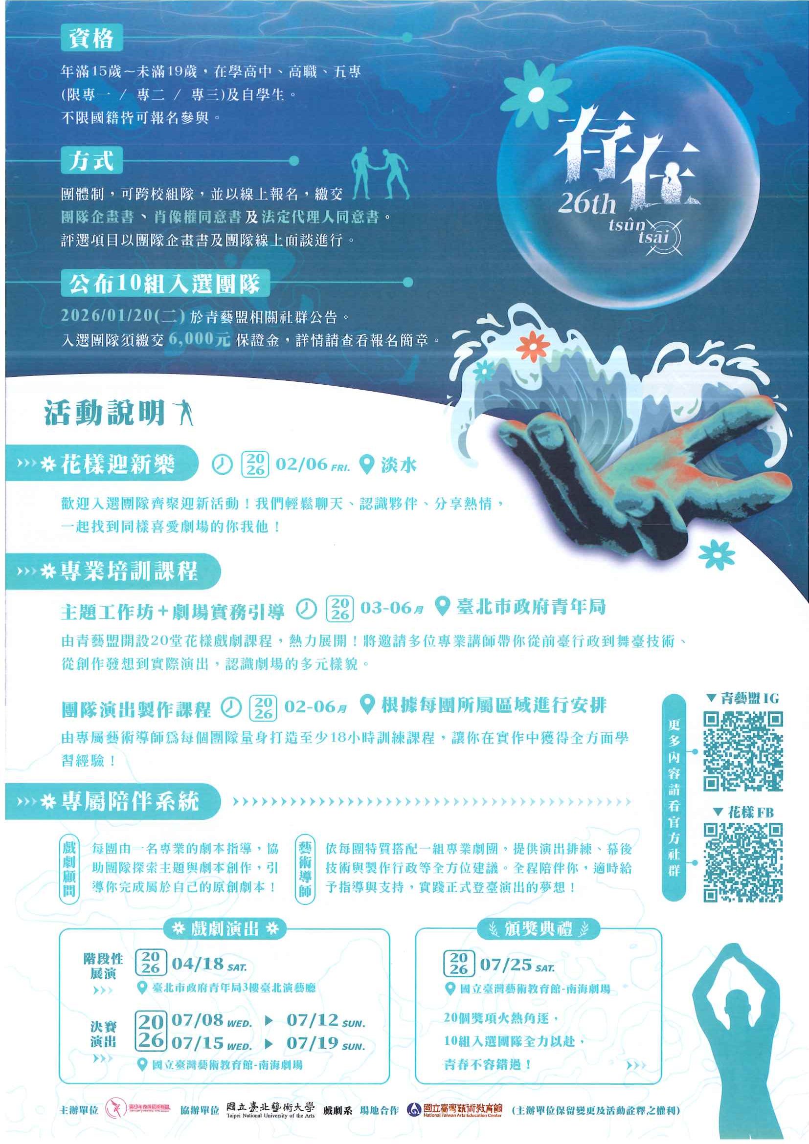 青少年表演藝術聯盟辦理「第廿六屆花樣年華全國青少年戲劇節《存在》」藝文活動
