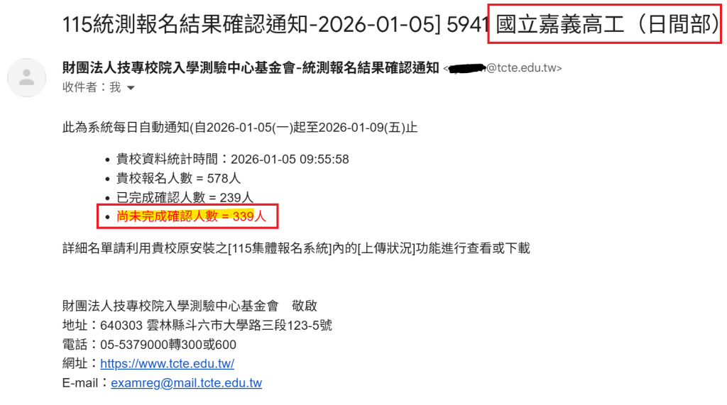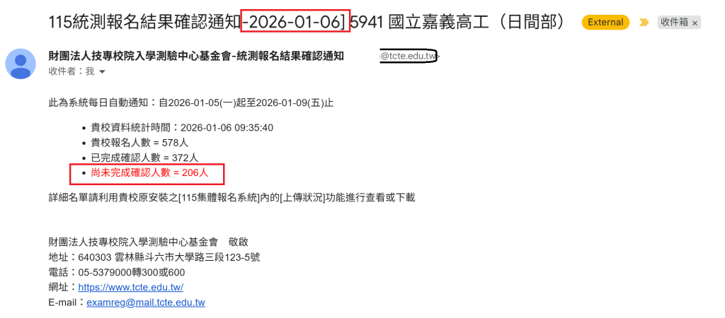 請點選下列網址,進行 115學年度統一入學測驗-報名資料查詢系統確認: