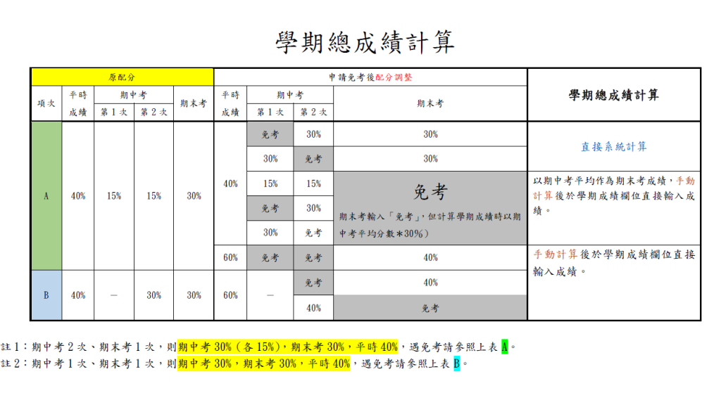 一、教師成績輸入:訂定於115年1月22日(星期四)中午12時截止,請老師務必慎重,避免事後更改影響學生升學相關權益,並請列印學期總成績簽名後,交至教務處。