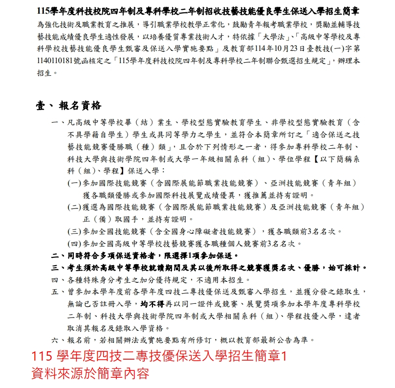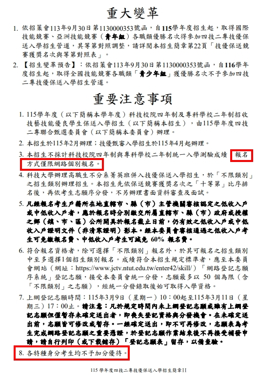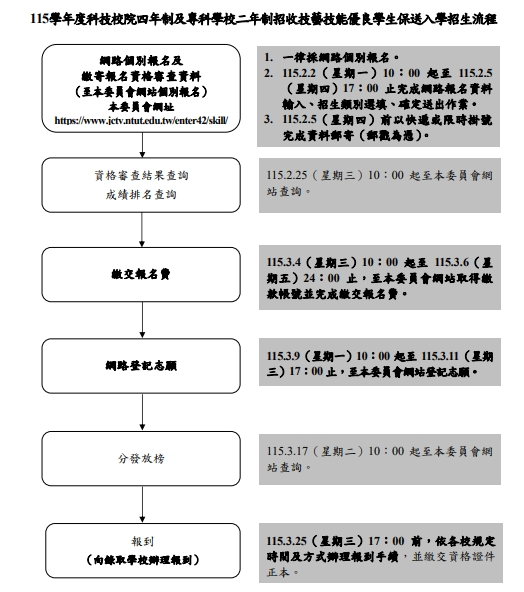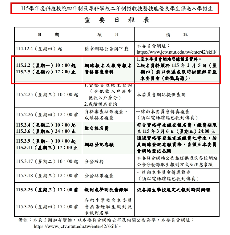 公告註冊組轉達115學年度四技二專技優保送入學_網路報名及繳寄報名資格審查資料_115.02.05(星期四)17:00截止