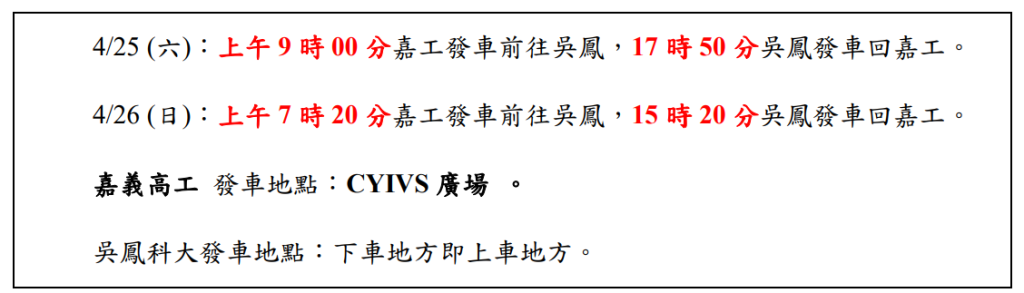 4月25、26日為統一入學測驗,請高三學生記得提早出門,考生休息區位置、便當訂購與專車資訊,請同學們參閱如下: